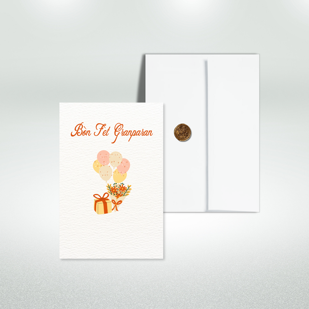 Voye yon mesaj lanmou pou granparan ou. Fè li konnen jan w renmen li e apresye li nan jou fèt li a. Kat sa prezante nan yon anvlòp blan kote lè w louvri’l w ap wè yon liy vèt ladan li.