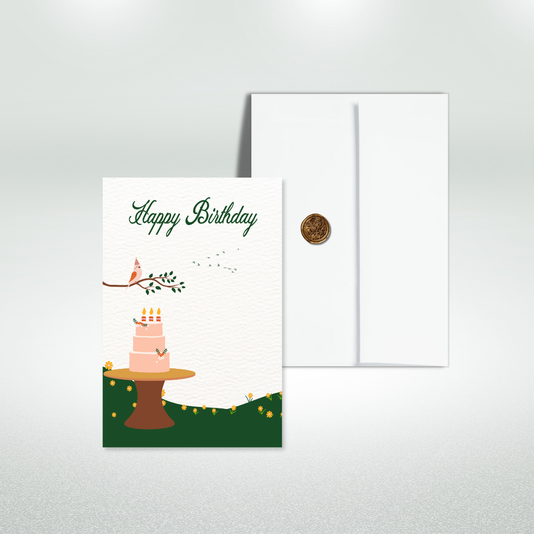 Send love and well wishes to a loved one on their birthday. This nature themed card is the perfect way to celebrate the life and special day of someone you love. This card comes with a white envelope with a premium emerald, green watercolor envelope liner.