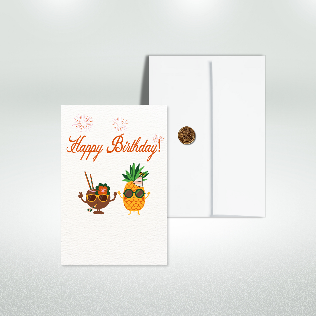 Send love and fun vibes to a loved one on their birthday. This tropical fruit themed card is the perfect way to celebrate the life of someone you love on their special day. This card comes with a white envelope with a premium emerald, green watercolor envelope liner.